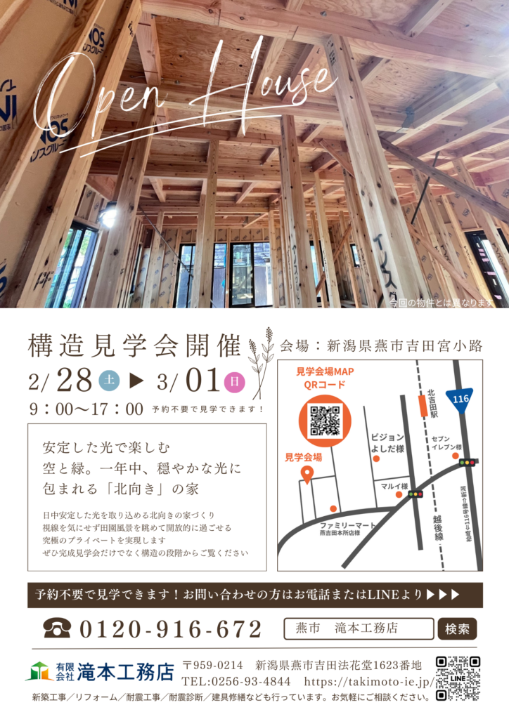 2/28㈯~3/1㈰構造見学会🏠開催(燕市吉田地区)予約不要