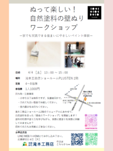 『ぬって楽しい!自然塗料の壁ぬりワークショップ』を開催いたします!